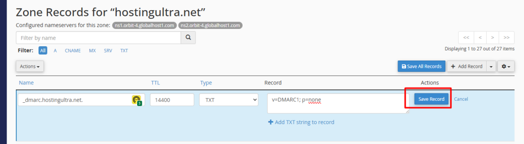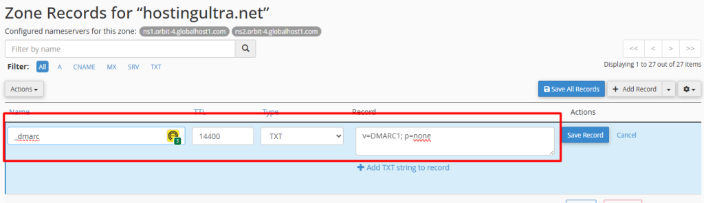 Cómo agregar un registro DMARC manualmente desde Zone Editor