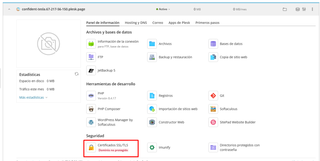 1. Inicia sesión en tu panel Plesk.