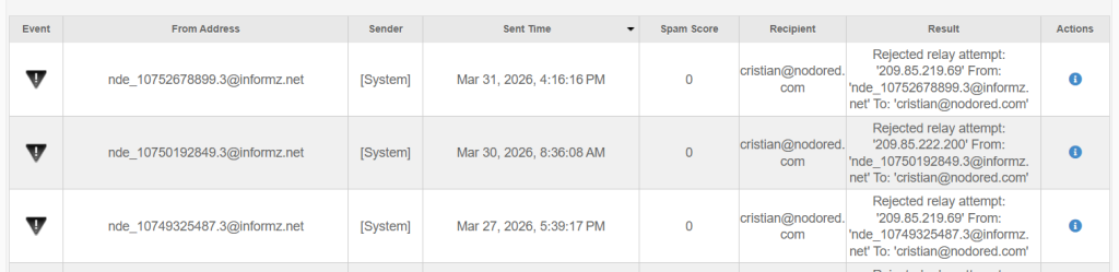 - Spam Score: puntuación de SpamAssassin, si aplica;
