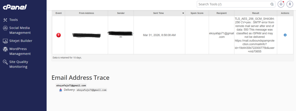 La herramienta Track Delivery de cPanel es útil para verificar qué ocurrió con un correo enviado y detectar posibles problemas de entrega.