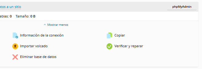 En cPanel y Plesk existe una aplicación denominada phpMyAdmin, esta nos permite ver la estructura de nuestra base de datos y las tablas e información contenida en las mismas.