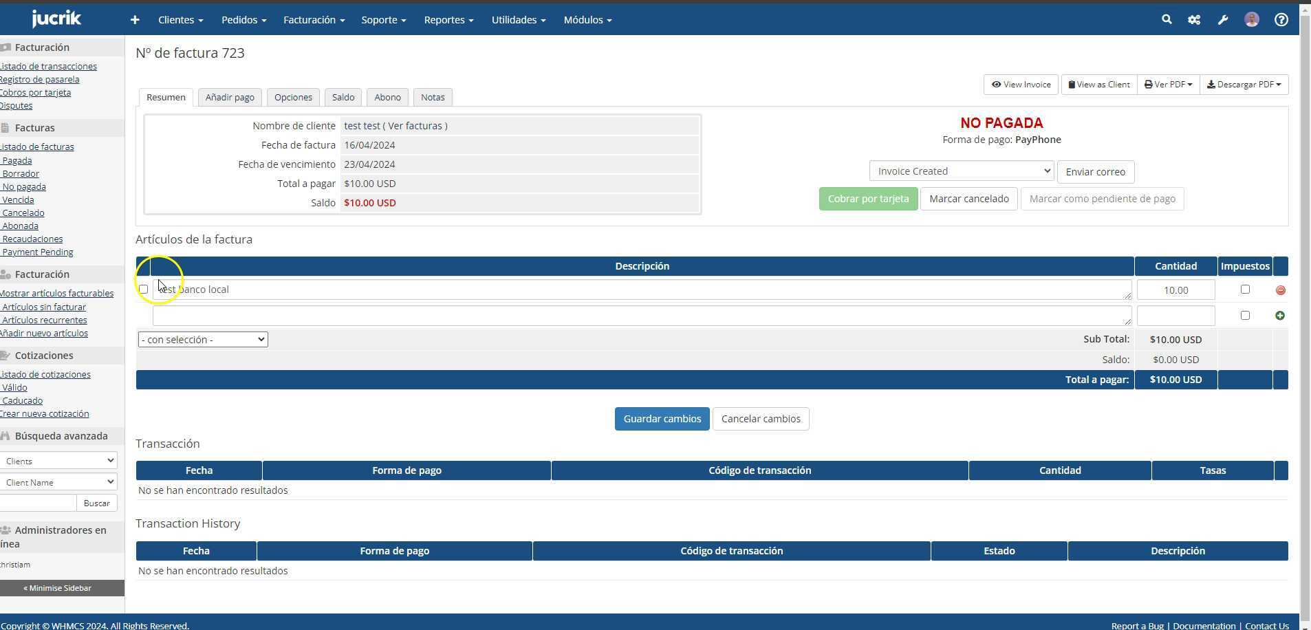 Buen día, estoy teniendo problemas al momento de añadir pago en las prefacturas cuando son por Transferencia Bancaria (porque es de forma manual) nunca termina de procesar, he esperado más de 20 minutos y nunca finaliza.